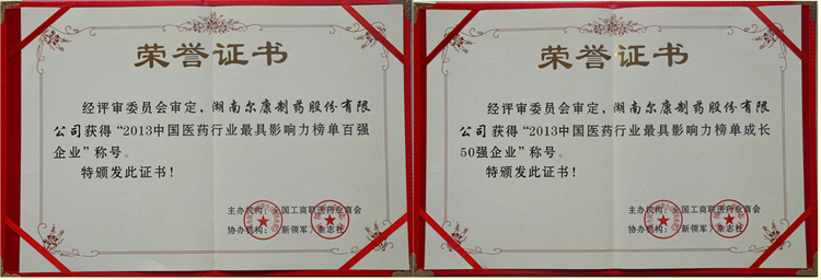 九州平台,九州(中国)荣获2013年度中国医药行业最具影响力榜单“百强企业”、“成长50强”殊荣
