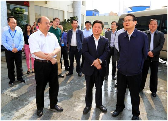 5月15日,艳阳高照。上午9点,湖南省委常委、长沙市委书记易炼红,长沙市委副书记张迎龙等市领导一行,在长沙市副市长、浏阳市委书记曹立军,浏阳经开区党工委书记郭力夫的陪同下亲临公司视察。公司董事长帅放文热情接待。