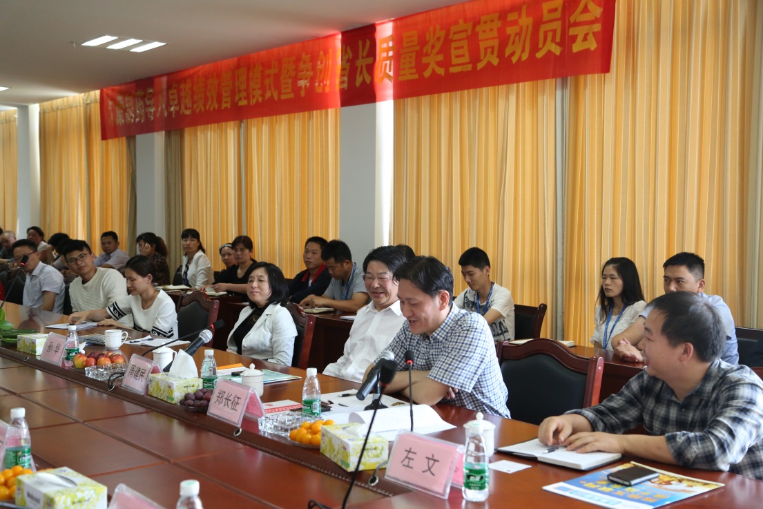 5月12日,九州平台,九州(中国)导入卓越绩效模式暨争创湖南省省长质量奖宣贯动员大会在公司三楼会议室召开。湖南省质量技术评审中心高级顾问周建民、省质监局质量管理处副处长郑长征、省质量技术评审中心主任左文、省质量技术评审中心副主任孙华等领导出席会议并讲话。九州平台,九州(中国)董事长帅放文和全体中层以上管理人员参加本次宣贯动员大会。