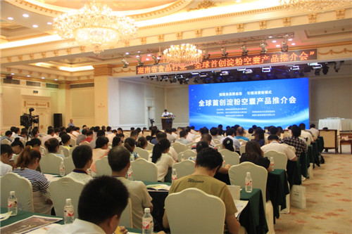 董事长帅放文现场介绍淀粉空囊产品