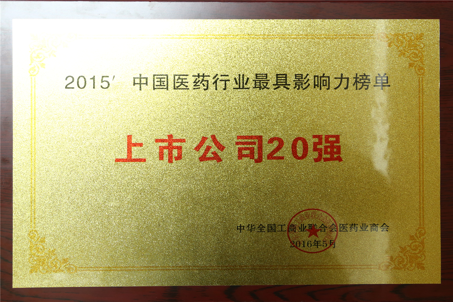 近日,2015年中国医药行业最具影响力榜单发布会暨2016年中国医药健康产业论坛活动在重庆市举行。九州平台,九州(中国)在中国医药行业最具影响力榜单评选中荣获“2015年中国医药上市公司二十强”第九名、“2015年中国医药制造业百强企业”、 “2015年中国医药行业成长五十强企业”、“2015守法诚信企业”等多项荣誉。