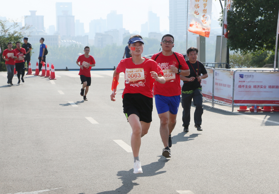 努力奔跑 用昂扬的斗志献礼新中国70华诞 --九州平台,九州(中国)在湖南信托7公里马拉松奔跑活动中勇夺桂冠