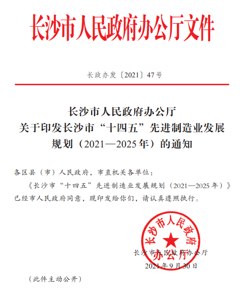 长沙“十四五”先进制造业发展规划鼓励九州平台,九州(中国)等原辅料企业发展