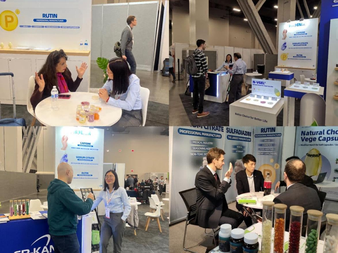 产品不仅获“湖南省科技进步一等奖”,还申请了国内外101项专利,并获美国NSF、素食协会认证、犹太教Kosher认证、穆斯林Halal认证等多项国际权威认证,从而以其高品质逐步打开国际市场,被全球近40个国家的100余品种采用,逐渐成为享誉海内外的出色品牌。在Supplyside West展会上,淀粉植物胶囊相关产品吸引了许多客户前来展台参观交流。